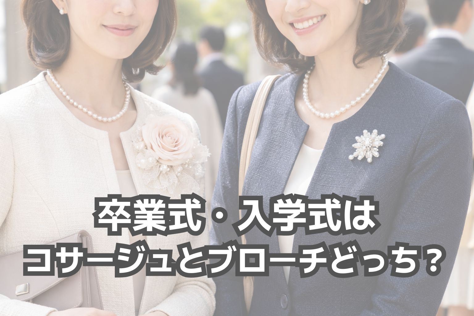 卒業式・入学式で「コサージュとブローチどっちがいいの?」と迷った場合、明確な正解はありません。大切なのは、式の雰囲気とスーツとのバランスです。